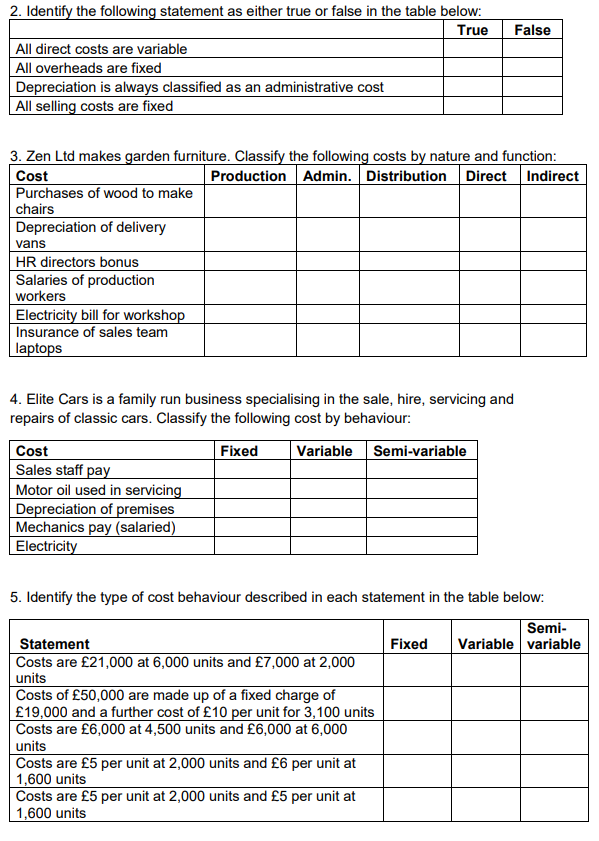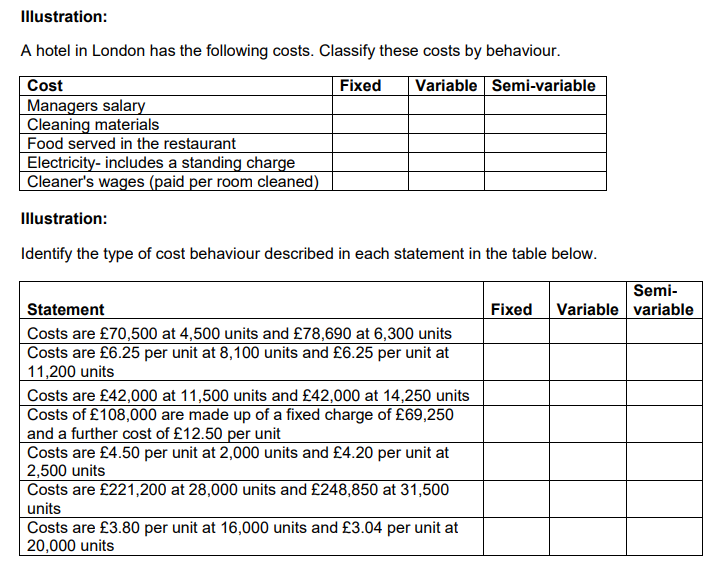 Classification of costs by behaviour-