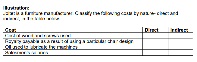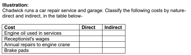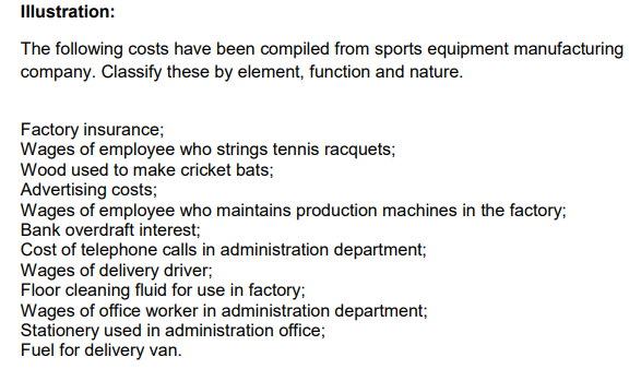 Classification of costs by nature-
