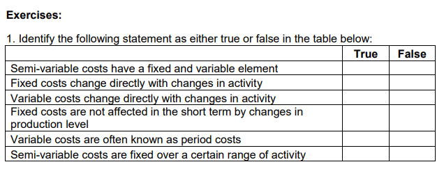 Fixed costs- these are costs that are not affected by changes in the level of production or activity, hence costs that don’t vary. For example, rent costs for a factory. It is assumed that if production increases, the factory rent cost would not be increasing based on the production volume. These costs are usually for set periods of time, so it isn’t affected by production levels, hence, it could be referred to as period costs. Period costs are time-based costs ie costs which are incurred in relation to a duration, such as rent or insurance for the month or year.