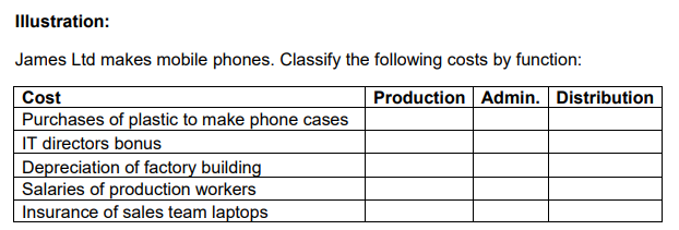 Classification of costs by function