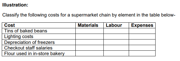 Classification of costs by element
